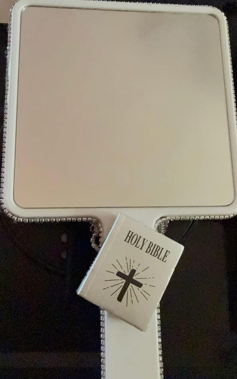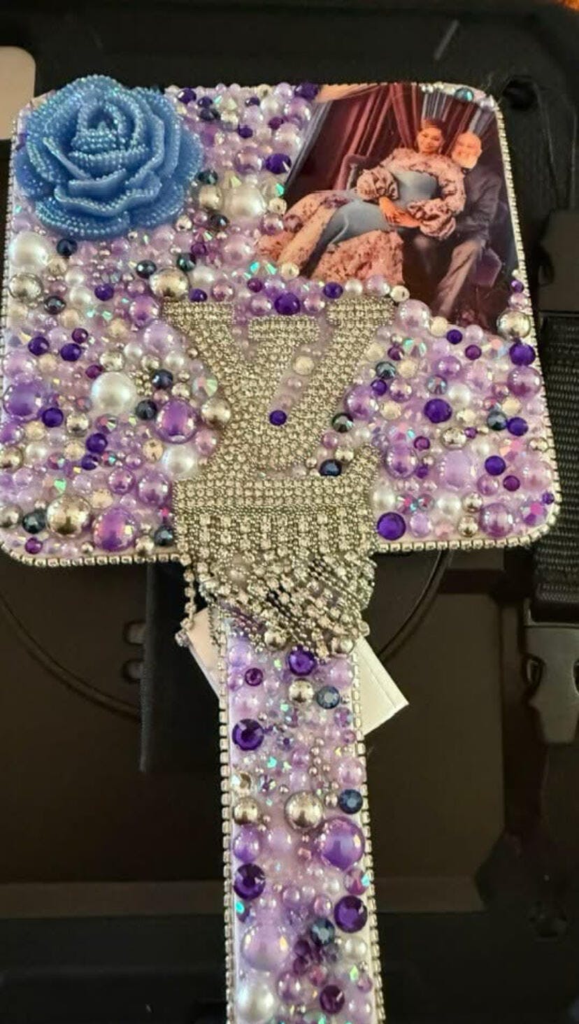 A customized mirror with gel patches, stones, and pearls, etc... would be a stunning and unique piece of decor.